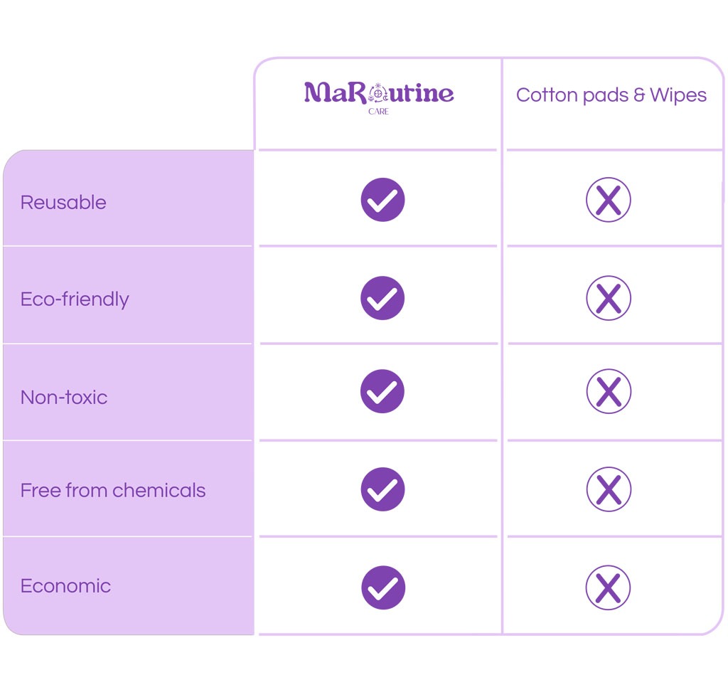At Ma Routine Care, we believe in combining beauty with sustainability. Our reusable makeup remover pads are designed for all skin types, offering a gentle yet effective way to remove makeup using JUST WATER.